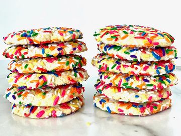 Crispy on the outside and chewy on the inside, these not too sweet buttery cookies are made with Madagascar vanilla to deliver a delightful flavor and covered with colorful and festive sprinkles.